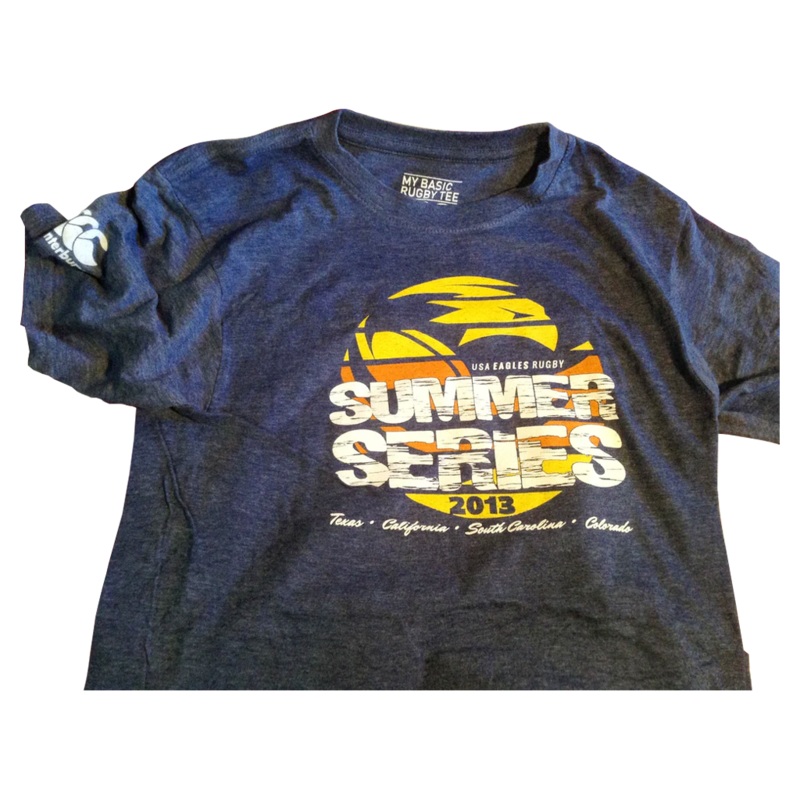 USA Rugby Summer Series Tee (Adult)2013 Summer Series Tee covering USA's matches against Ireland, Tonga, Canada, France and the Women's Nations Cup.Sizing is a "slim fit" to please order accordingly.
